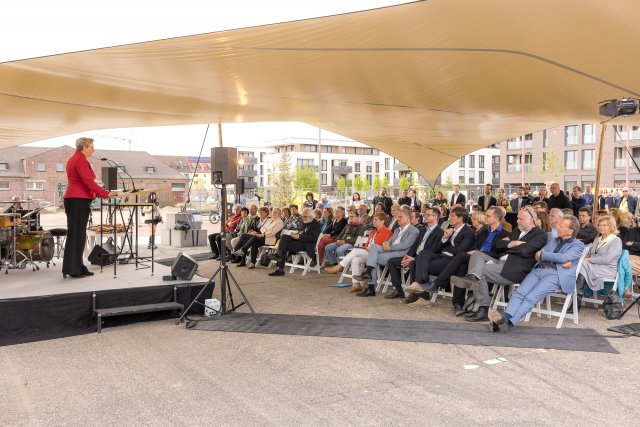 Klara Geywitz, Bundesministerin für Wohnen, Stadtentwicklung und Bauwesen bei der Ausstellungseröffnung auf dem...