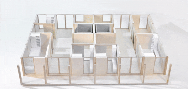 Die Arbeit mit der Projektgruppe des Collegium Academicum eignete sich daher perfekt für den Ersteinsatz. Zum einen war das Projekt durch den partizipatorischen Planungsprozess geleitet. Zum anderen bestand der Wunsch, dass nicht nur die erste Generation der Studierenden, sondern auch alle zukünftigen Bewohner*innen ihre ganz individuellen Wohnwünschen umsetzen können. So haben wir Wohnungen entwickelt, die sich mit einfachen Mitteln baulich verändern lassen, indem die Wände innerhalb der Wohnungen versetzbar sind. Auch die Möbel können in der hauseigenen Werkstatt an einer CNC-Fräse selbst gefertigt werden.