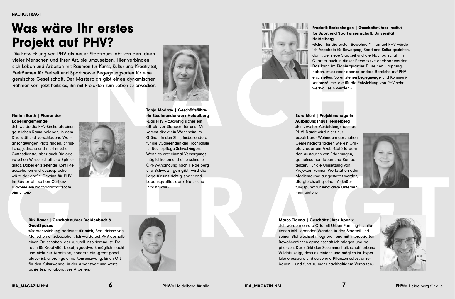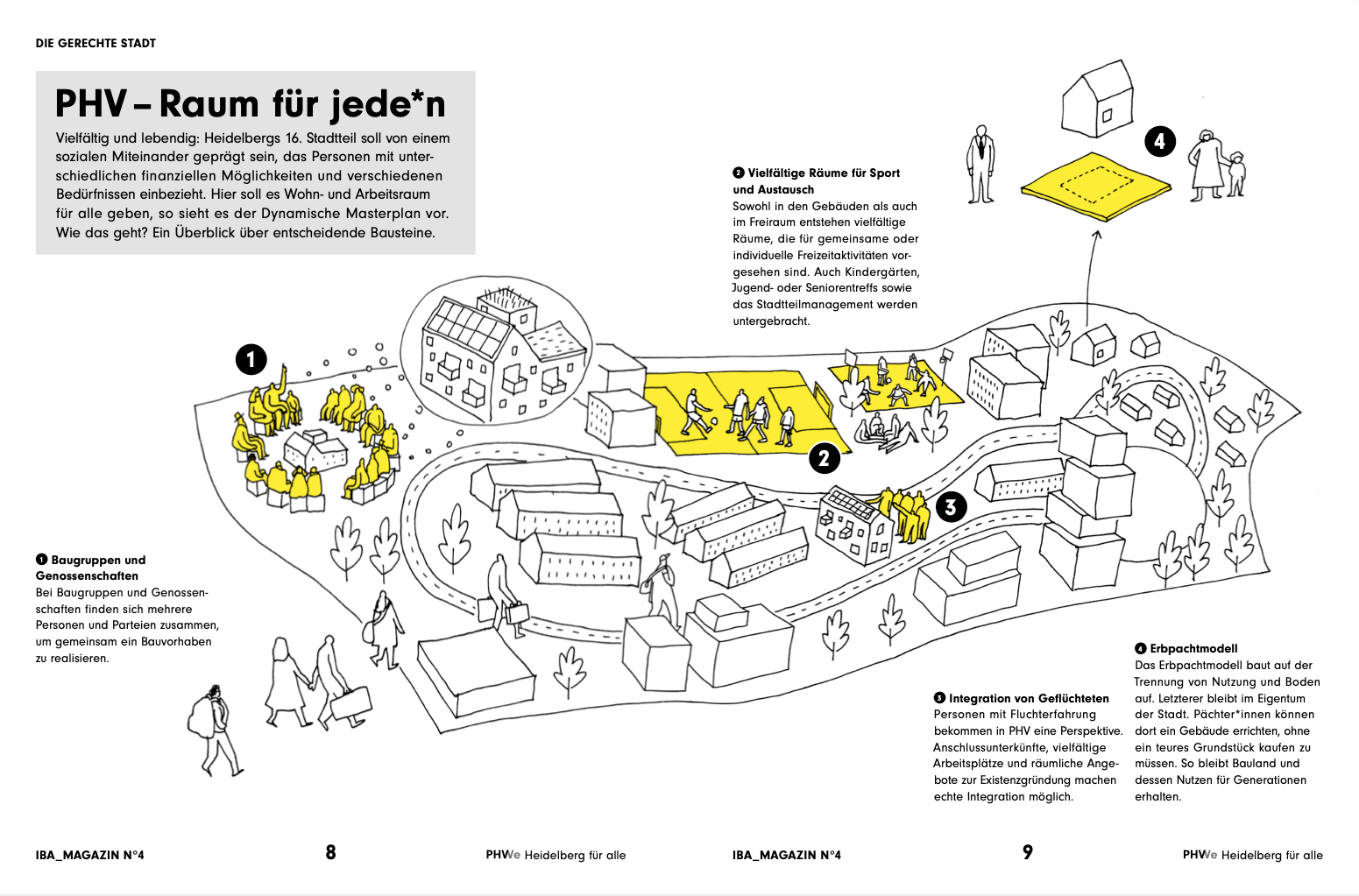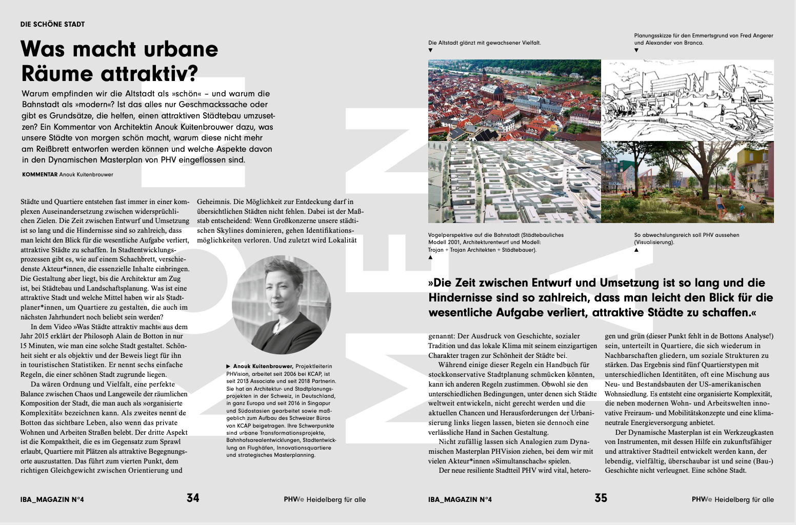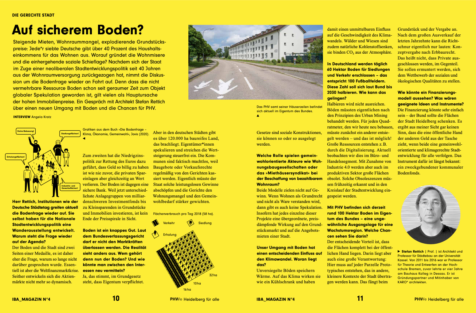 Architekt Stefan Rettich erläutert im Interview, wie ein neuer Umgang mit dem Boden die aktuelle Wohnmisere lindern könnte. Die Verkehrsforscherinnen Claudia Nobis, Julia Schuppan und Rebekka Oostendorp zeigen auf, warum neue Quartiere wie PHV eine Chance für die Mobilität sind. Dirk Hebel vom KIT berichtet von alternativen Lösungen für den Kreislauf von Baustoffen. Und Anouk Kuitenbrower, Projektleiterin der PHVision, geht der Frage auf den Grund, warum wir die Altstadt als schön und die Bahnstadt als modern empfinden. Neben weiteren Beiträgen von Wolf Lotter (Essayist und Redner), Angelus Eisinger (Städtebau- und Planungshistoriker) und Dieter Läpple (Stadtforscher) werden Konzept und Ziele des Dynamischen Masterplans einfach erklärt.