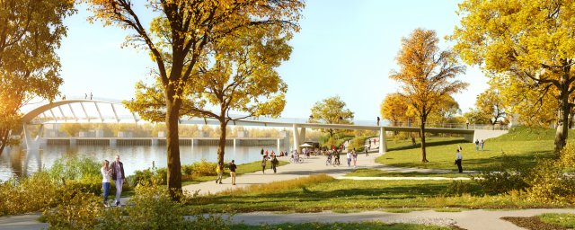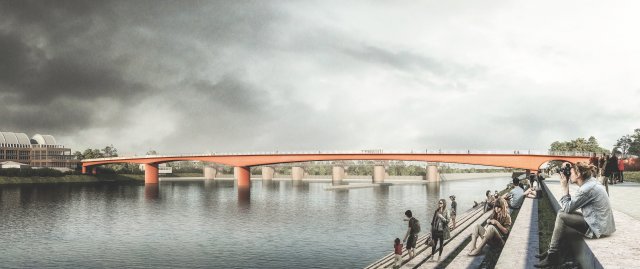 In naher Zukunft soll östlich des Bergheimer Wehrs eine neue Rad- und Fußwegbrücke Heidelbergs wachsenden Süden an das Neuenheimer Feld anbinden. Sie stellt eine Verknüpfung zur geplanten Radschnellverbindung von Mannheim nach Heidelberg sowie zum vorgesehenen Netz über das Patrick-Henry-Village nach Schwetzingen in Aussicht. Außerdem wartet sie mit neuen Grün- und Freiflächen auf – und lädt so Passanten zum Verweilen ein.