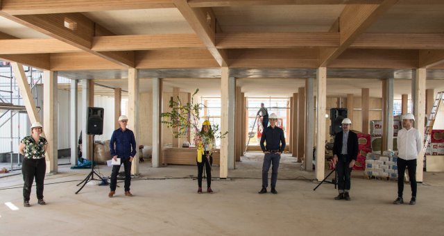 Selbstverwaltetes Wohnheim feiert Fertigstellung des Holz-Rohbaus