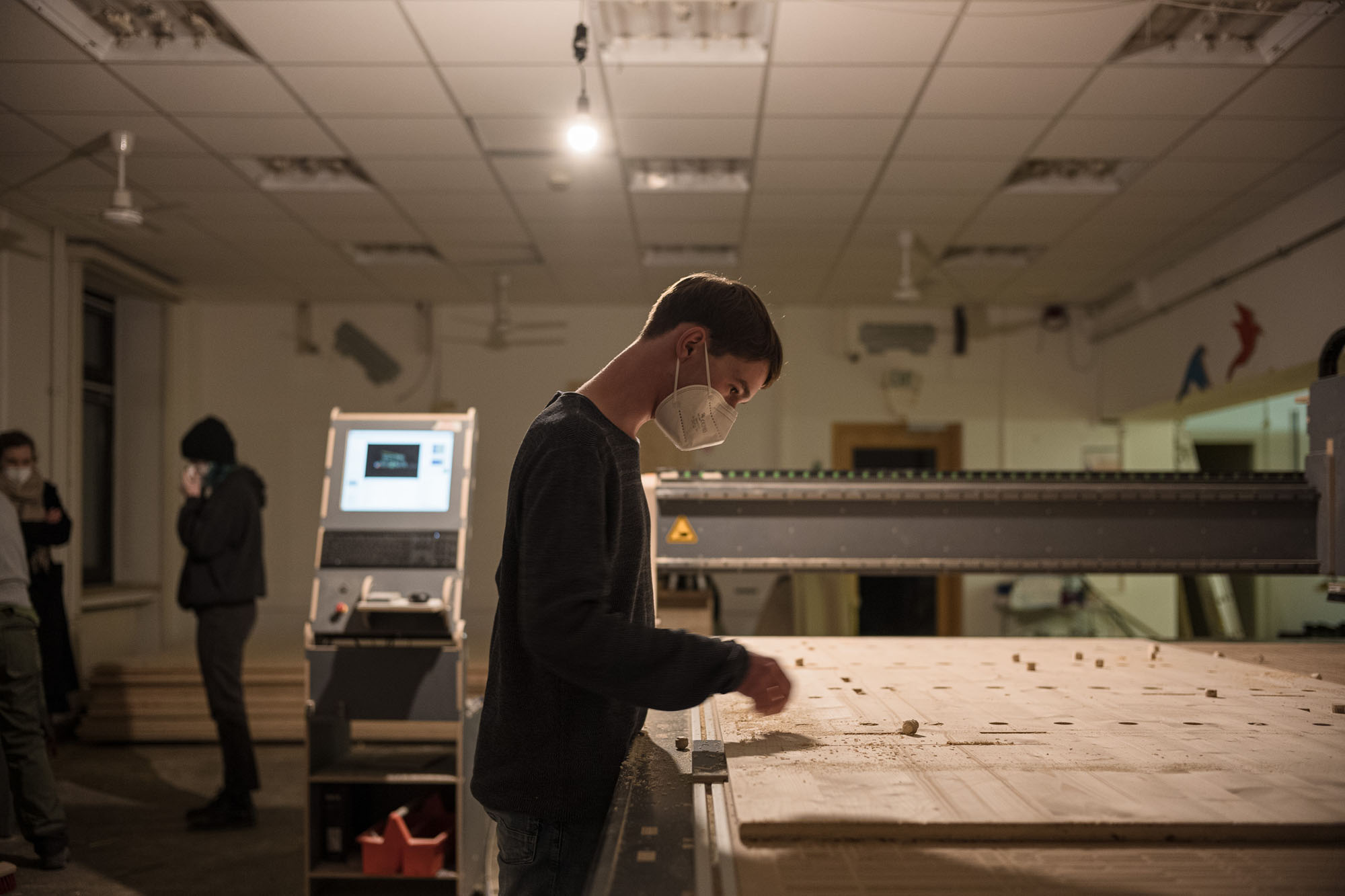 The Collegium Academicum is pioneering on multiple levels: It is the first student residence in Germany that is not only managed by the residents themselves, but was also initiated, developed, and constructed by student volunteers. It is the first multi-story timber structure with almost 5,000 square meters of usable space featuring no steel joints. And it is also a subject of research for a multitude of scientific investigations. Hence, for example, it serves the Institute for Energy and Environmental Research as a practical model for analysis of space-saving living that still offers a high quality of life.