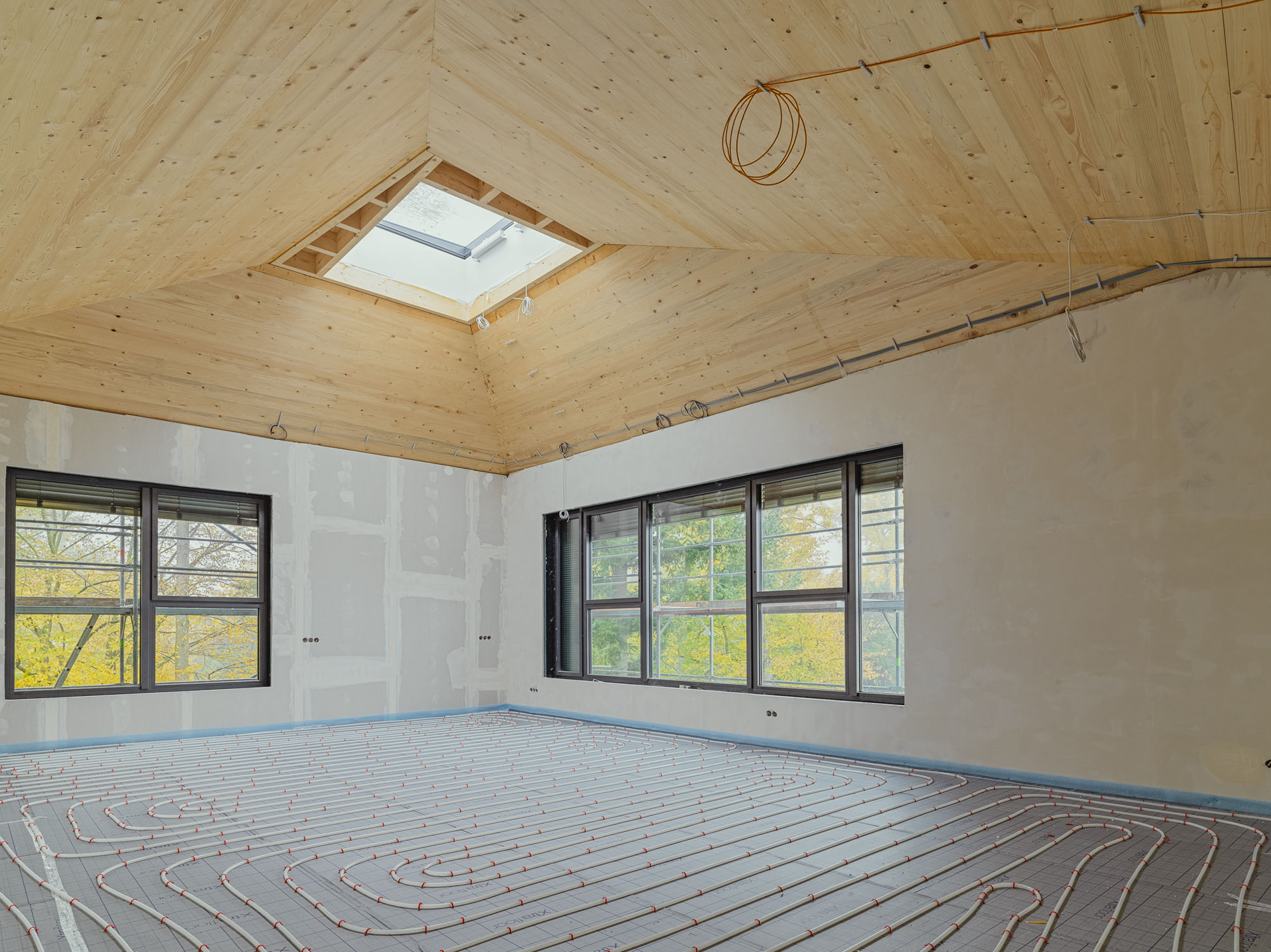 The design also enabled new access to the existing assembly hall and the low-lying new sports hall for the district, and thus enriches the latter’s relationship with the conglomerate of different school buildings in the heritage-listed and atmospherically appealing former monastery garden. The three-story structure built in timber-hybrid style slots self-confidently into the existing ensemble thanks to its small-scale design and the heterogeneous tiling of the brick façade.