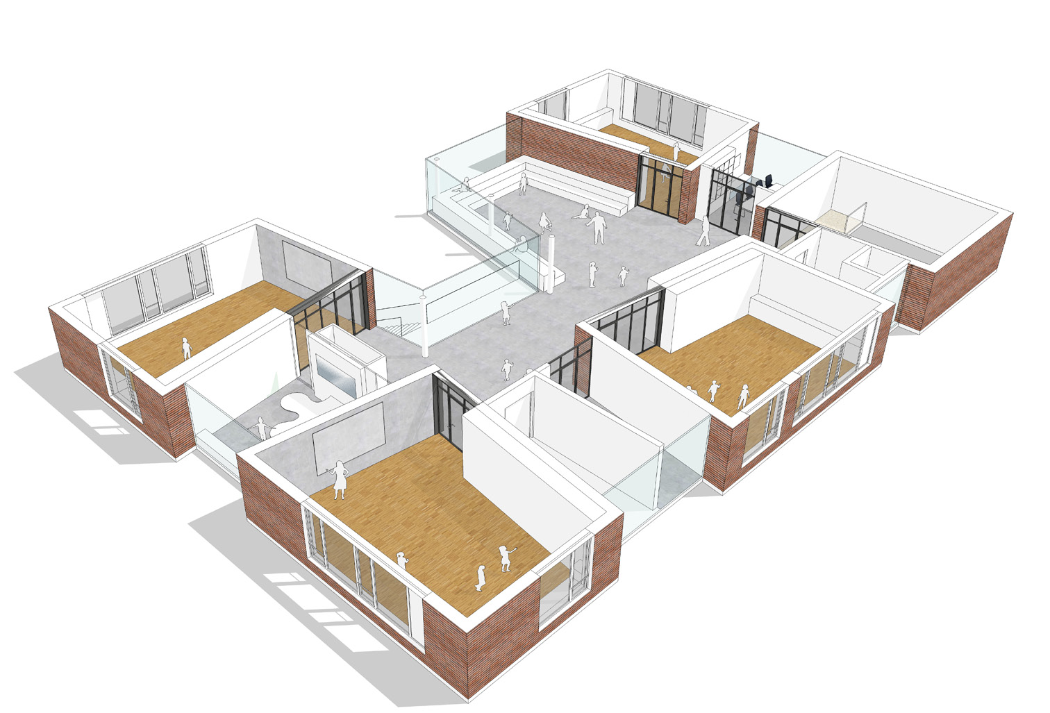 The new place of learning makes use of diverse spatial offerings for »competence-based learning«: The classrooms, so-called »homes«, are connected via a spacious »marketplace« lying in front of them. Here, the architects designed differing zones and atmospheres for various ways of learning, such as areas for teamwork and places to retreat to for concentrated, independent study. The offering is supplemented by an arena for gatherings, a teacher team station, and creative workshops.