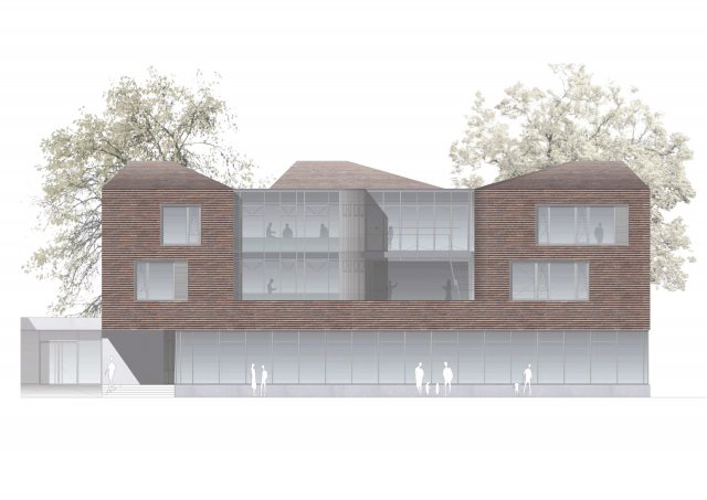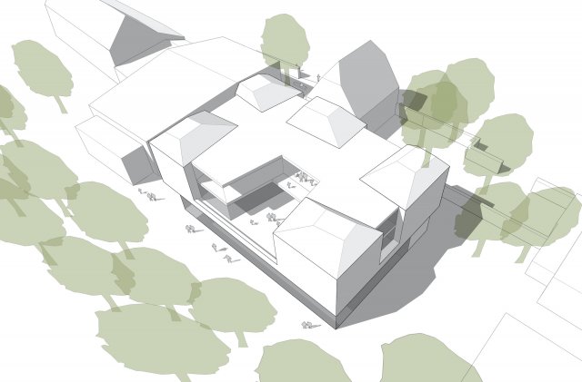 Erweiterungsbau, dessen Architektur die Zugehörigkeit und Eigenständigkeit der Sinti und Roma erfahrbar machen...